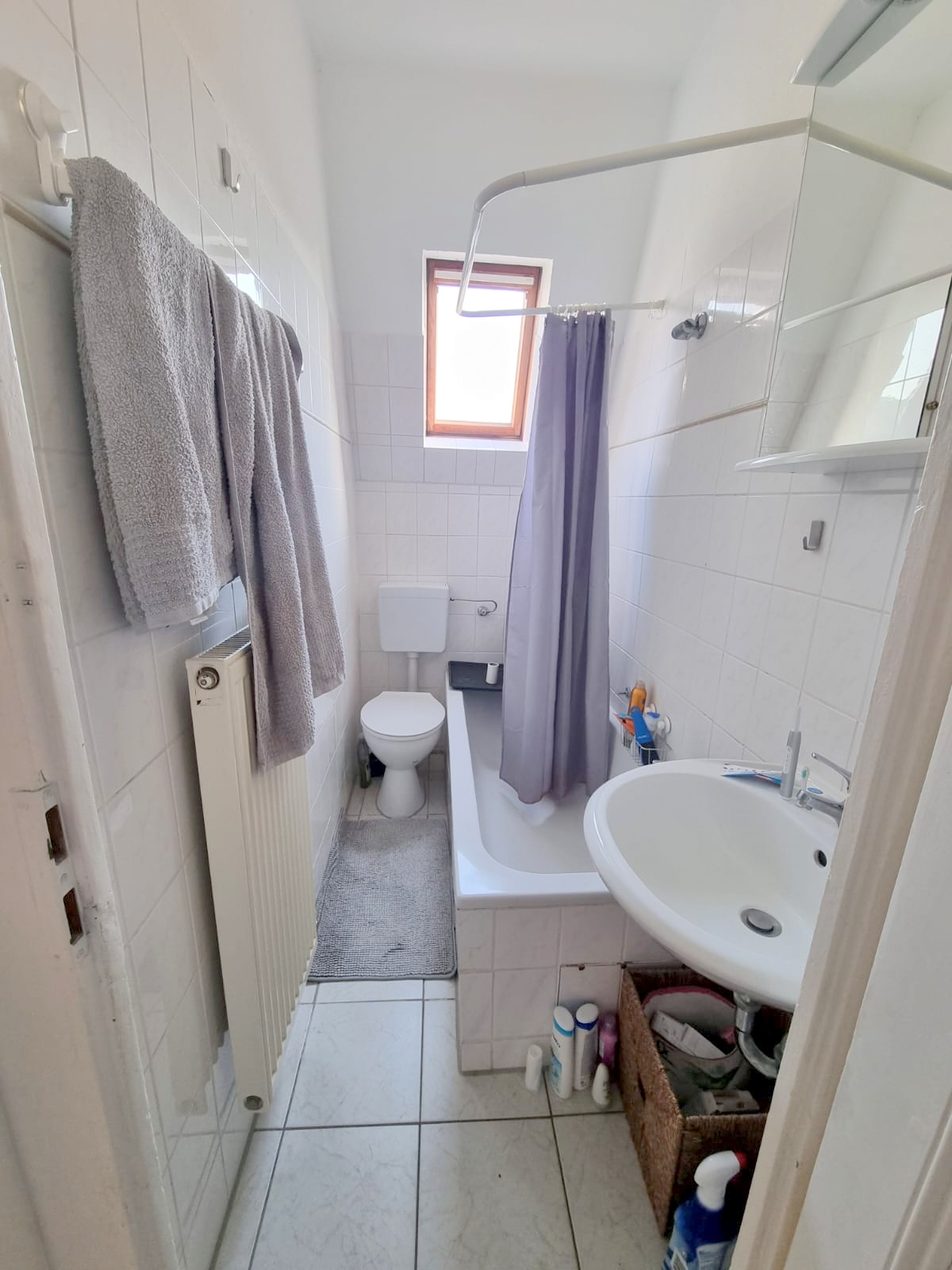 Das Bad, ein helles Tageslicht-Wannenbad in weiß.