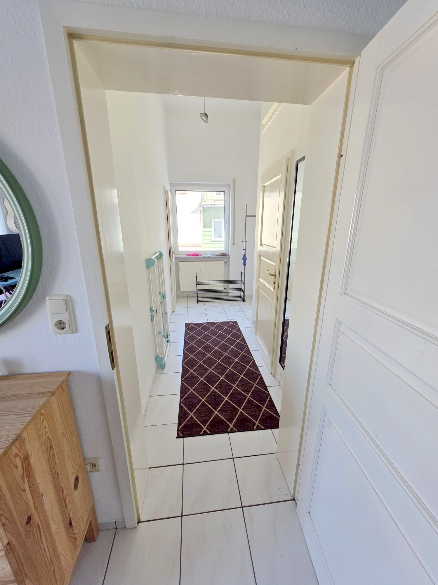 Sie betreten die Wohnung in einen komfortabel großen Flurbereich, von dem das innenliegende Wannenbad sowie das Zimmer und ein separater Abstellraum inkl. Waschmaschinenanschluss begehbar sind.