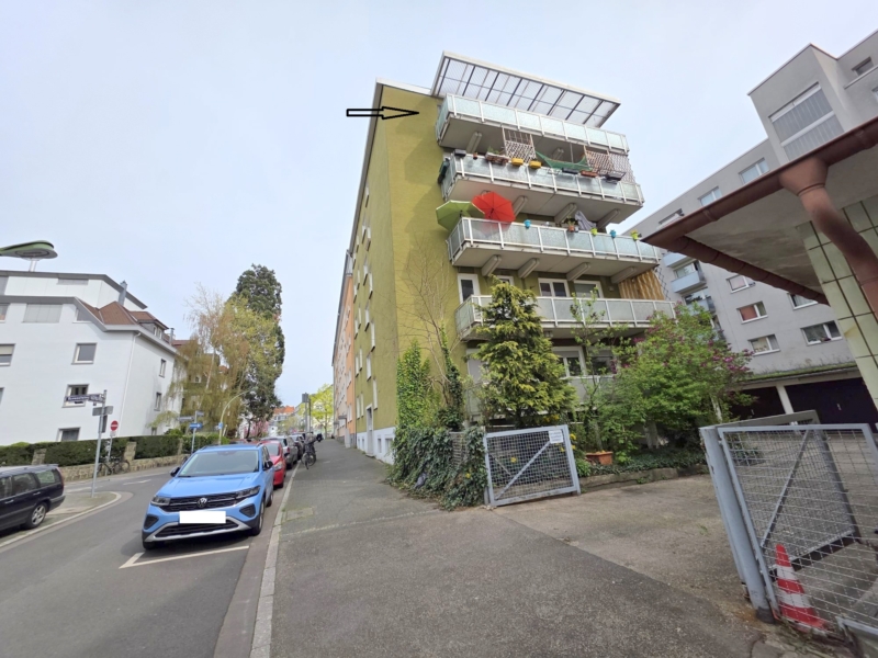 In diesem gepflegten Mehrfamilienhaus in Top Lage nahe EZB wird im 4. OG (mit Aufzug) diese geräumige 2 Zimmerwohnung mit großem Südbalkon frei.