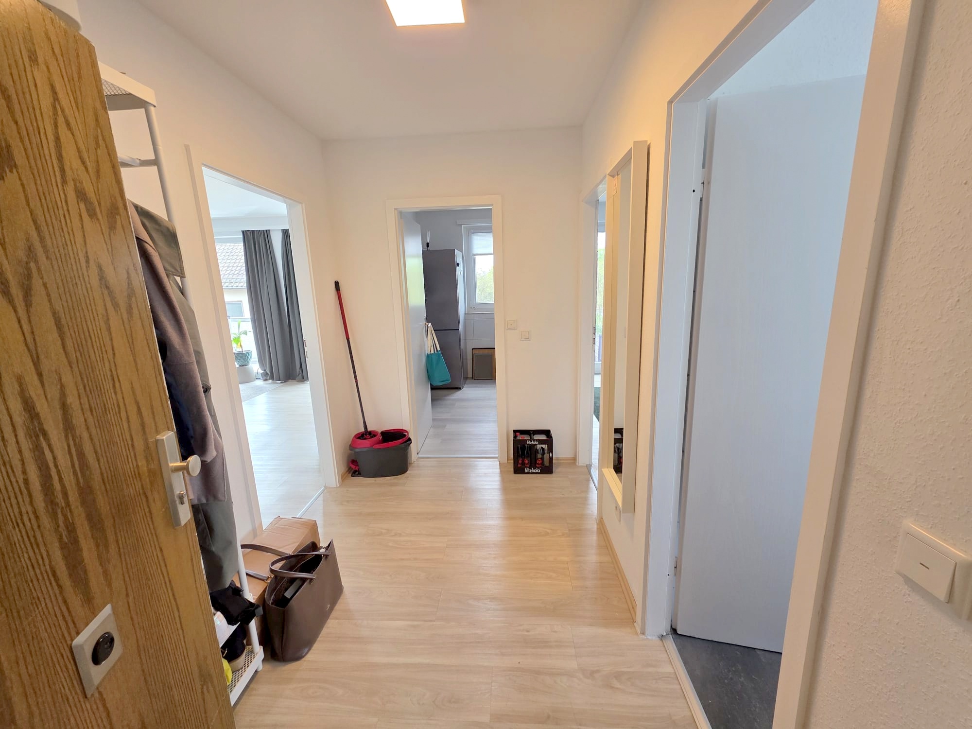Sie betreten die Wohnung in einen kleinen Flurbereich, von dem aus alle Zimmer einzeln zu begehen sind.