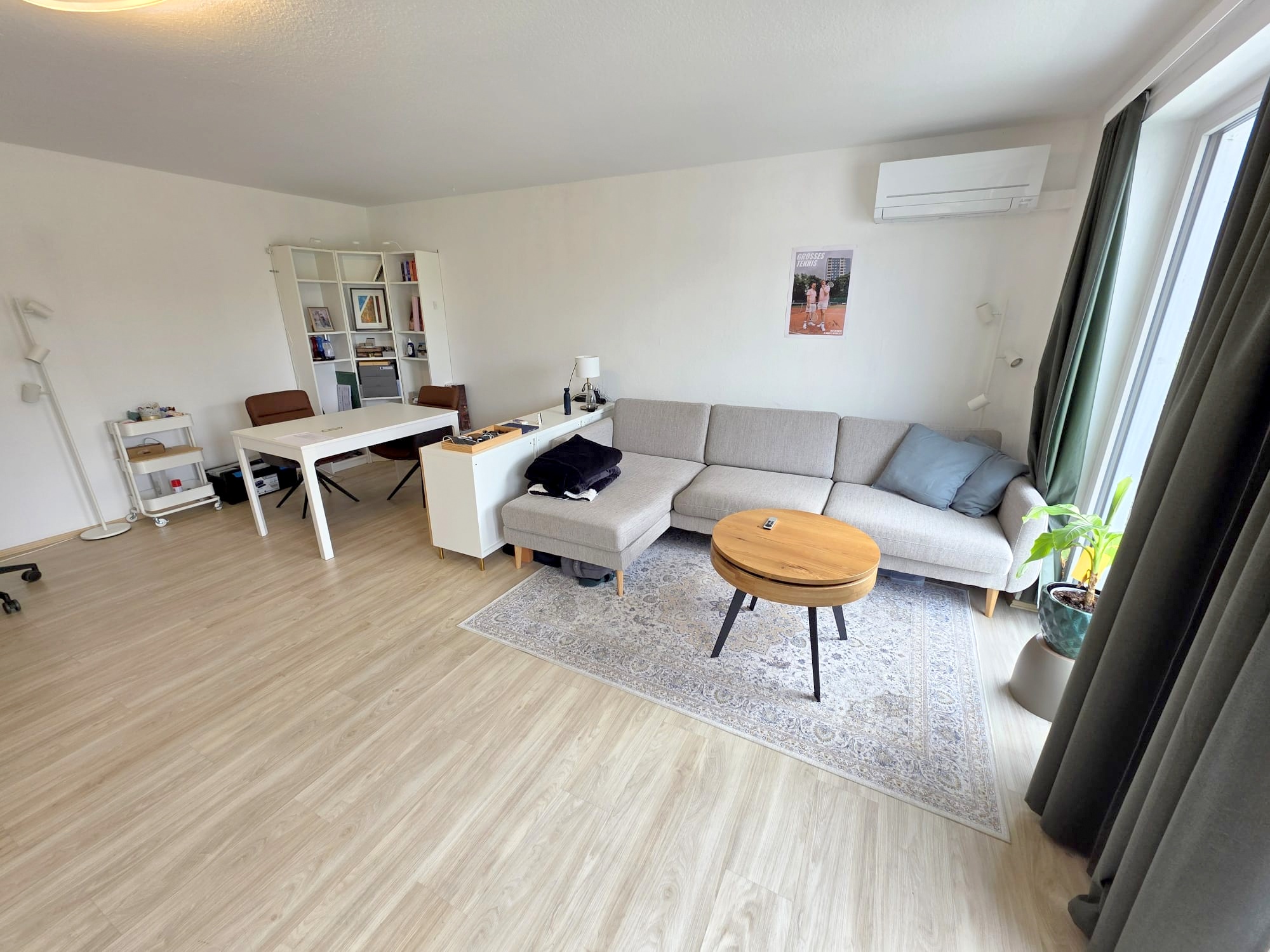 Der vorige Mieter hat eine Klimaanlage in Wohn-/und Schlafzimmer einbauen lassen, die auch zum energiesparenden