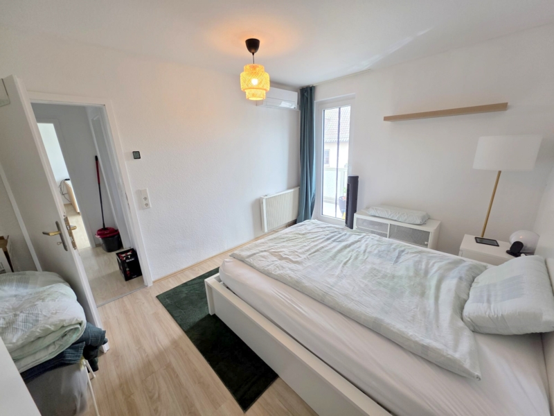 Auch vom Schlafzimmer gibt es den direkten Zugang zum großen Balkon.