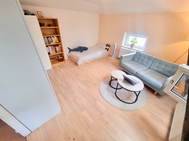 Durch die Küche der Zugang zum Wohn-/Schlafraum, den man sehr gemütlich einrichten kann. Der Raum bietet tatsächlich einen ganz besonderen Charme.