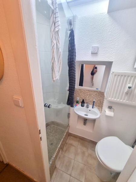 Wichtige Info: In der Wohnung kann keine Waschmaschine angeschlossen werden, auch gibt es keinen eigenen oder allgemeinen Waschkeller dazu, ein Waschsalon ist allerdings nur ca. 5-10 Fußminuten entfernt.