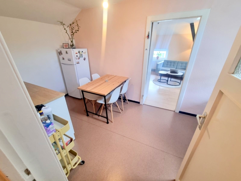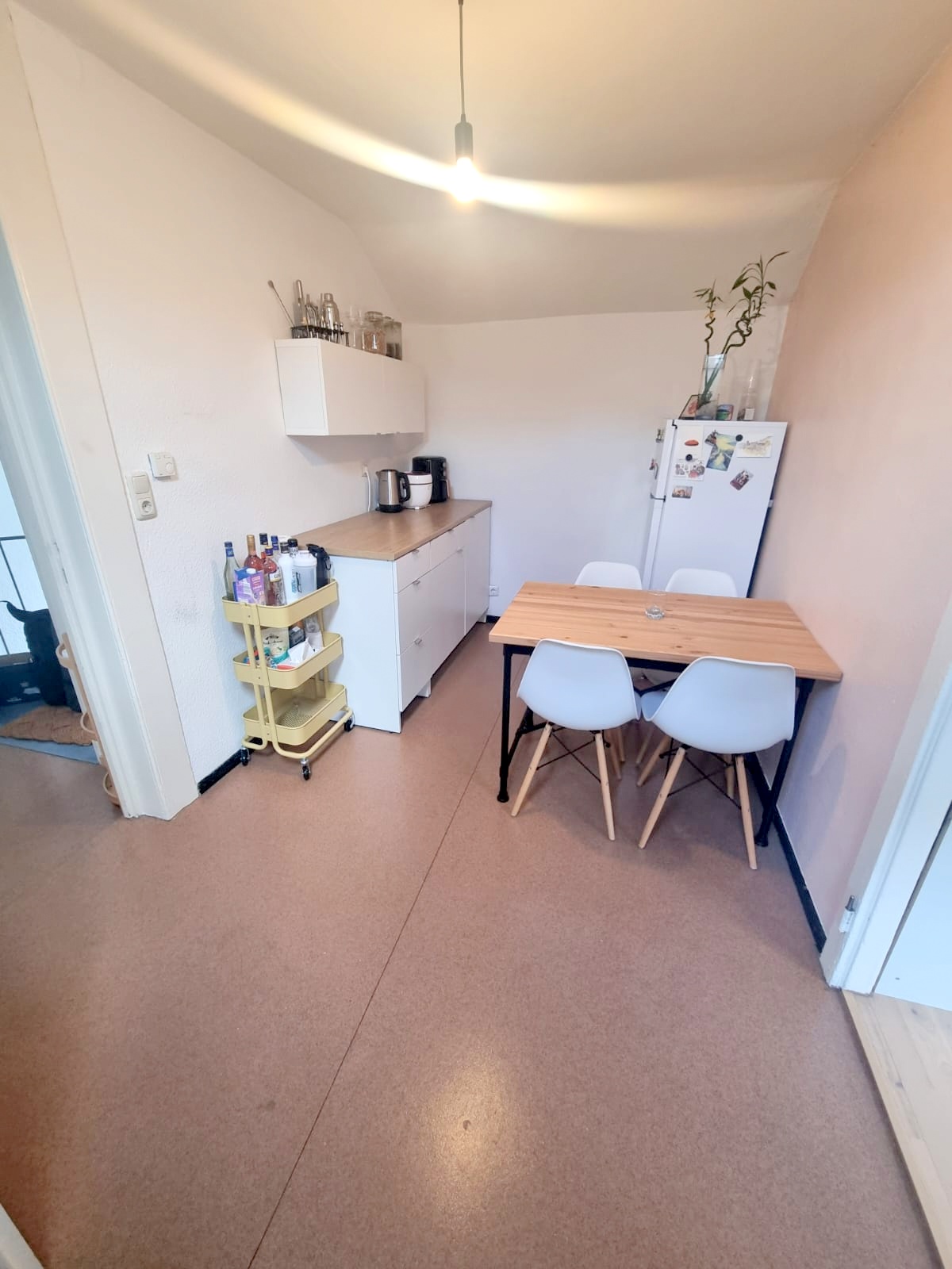Der Mieterin hat diese zusätzlich mit Tisch inkl. 4 Stühlen sowie mit zusätzlichen Küchenschränken in weiß ausgestattet, welche übernommen werden können auch inkl. einer Tisch-Spülmaschine, einem separaten Backofen und einer Mikrowelle.